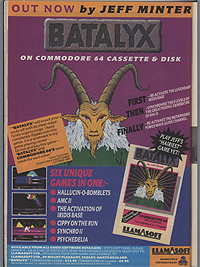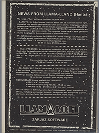 Super Ox Wars and Five a day Goatup, Cavern of Minos and Gridrunner Deflex, Minotron 2112 and Minotaur rescue Llamasoft historycal ads 1 Llamasoft historycal ads 2 Llamasoft historycal ads 3 | ||