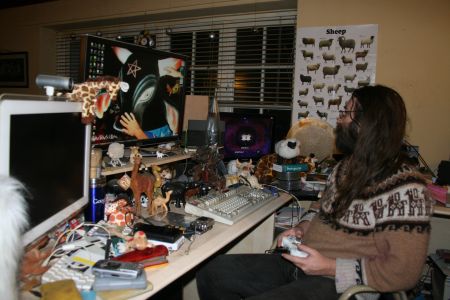 Jeff: I find having the animals around to be very therapeutic and relaxing when one gets stressed out from work. Working all the time sitting at the computer can get tiring and sometimes stressful, and sometimes one would like simply to disengage for a while from all things technological and spend some time with nature. At those times it is a real joy to be able to step outside and take a walk around the fields, and to have all the sheep and other animals come running up looking for attention and cuddles. It is hard to feel stressed when you are cuddling a large, happy sheepie :) .