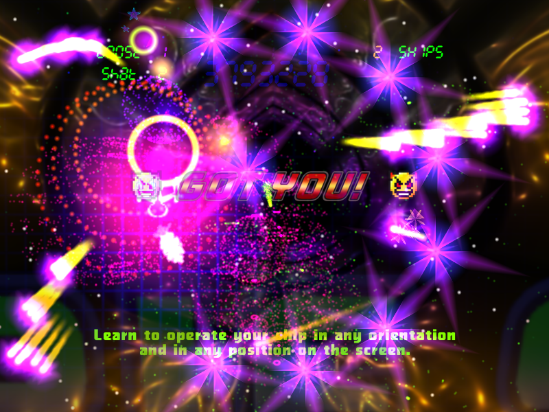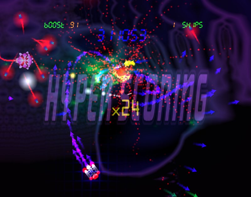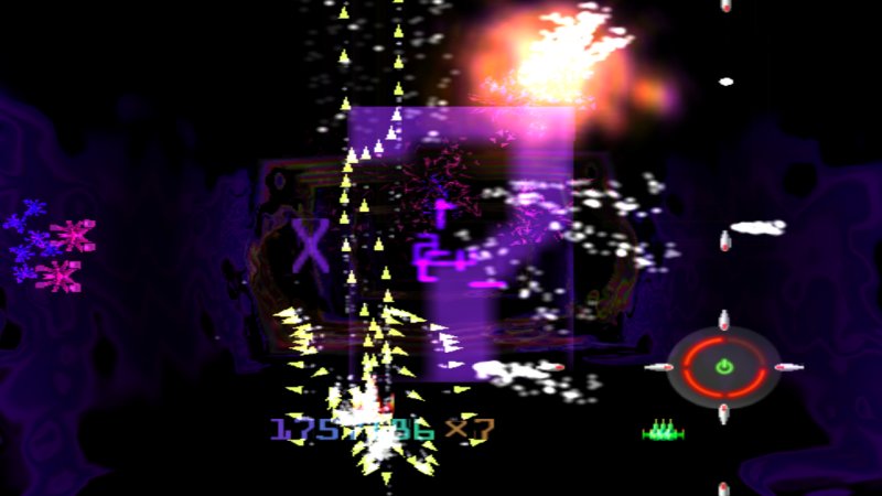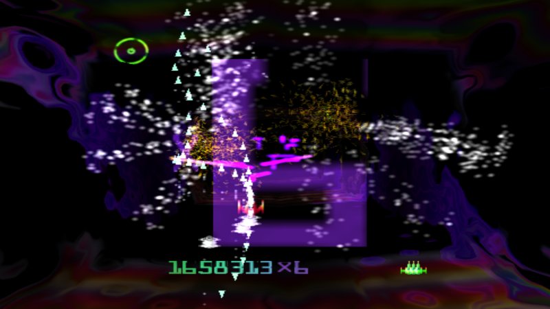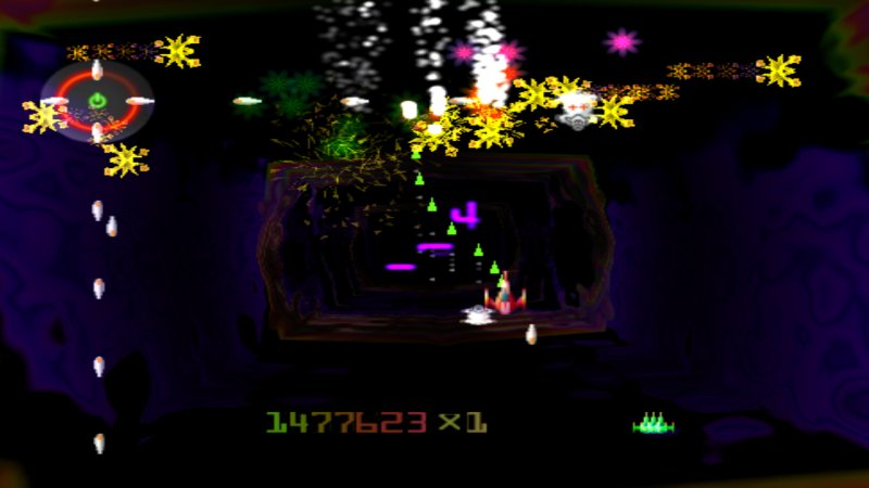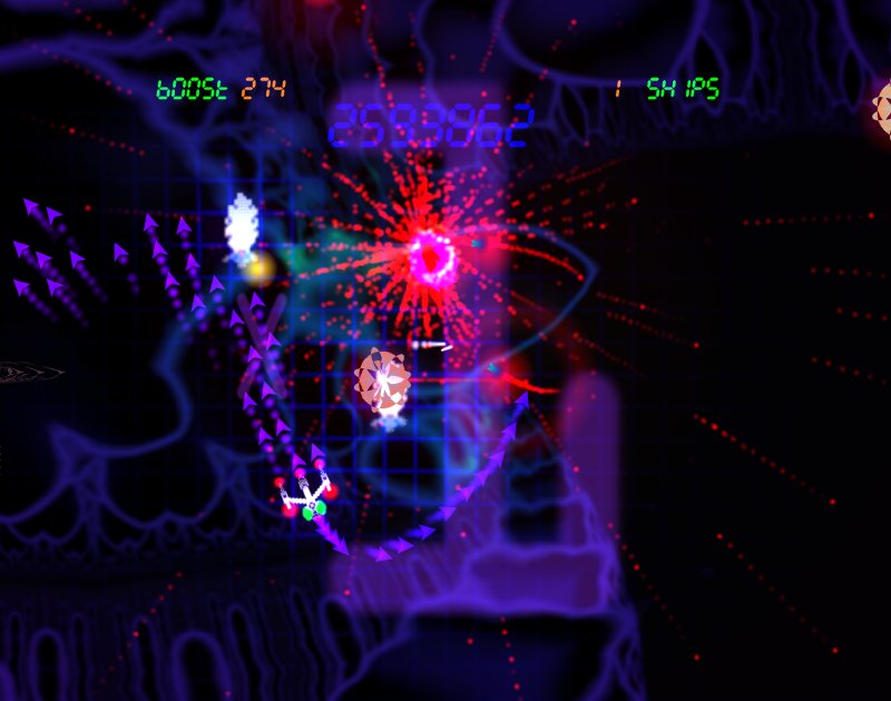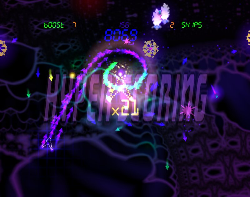 In LHP mode you controlled the ship with just the left stick (hence the name), relying on position and gravity to aim the shot streams. I found this mode visually very pleasing to play and quite a nice change from traditional arena shooter twin stick gameplay which is very common these days.